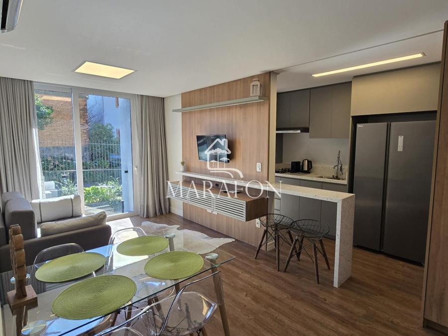 Apartamento de um dormitório, mobiliado, splits instalados, banho social, living dois ambiente com espera para lareira, cozinha com churrasqueira, espera para calefação e uma vaga de garagem.
