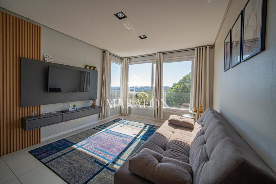 Lindo apartamento à venda, com uma linda vista, todo mobiliado, banho social, living dois ambientes, cozinha americana com churrasqueira, área de serviço, splits instalados, esquadrias em PVC, piso cerâmico e uma vaga de garagem.