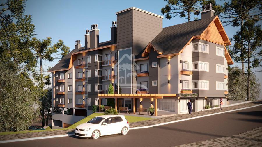 Excelente apartamento à venda em Gramado, conta com uma suíte, lavabo, cozinha com churrasqueira integrada com living, banho social, esperas para lareira e split, esquadrias em PVC com vidros duplos, pisos laminado e porcelanato e forro em gesso. Prédio com elevador e um box de garagem para cada unidade.