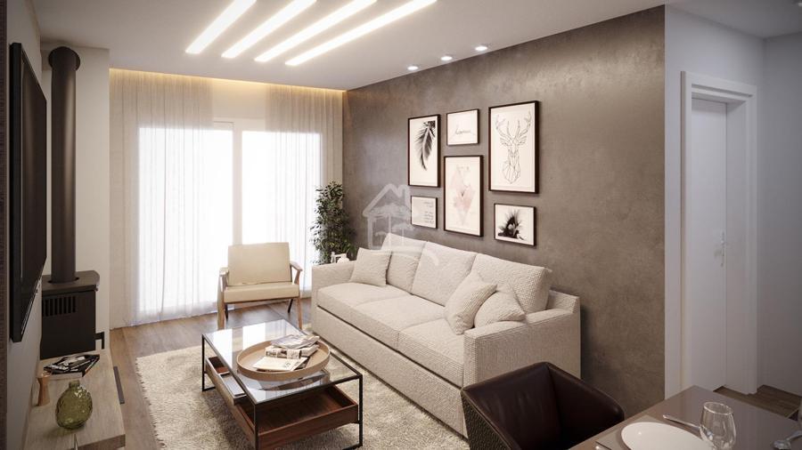 Ótimo apartamento à venda em Gramado, conta com uma suíte, living dois ambientes, cozinha com churrasqueira, área de serviço integrada, lavabo, esperas para calefação, splits e lareira, esquadrias em pvc com vidros duplos, piso laminado e porcelanato e acabamentos em gesso.