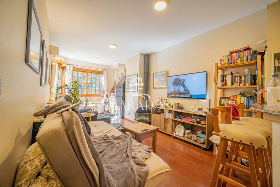 Apartamento à venda em Gramado! Conta com um dormitório, living dois ambientes, banho social, cozinha americana e uma vaga de garagem, medidores de água e gás individuais, piso laminado, madeira e cerâmico, água quente instalada, esquadrias em madeira. O edifício conta com elevador, hall decorado, jardim e zelador.
