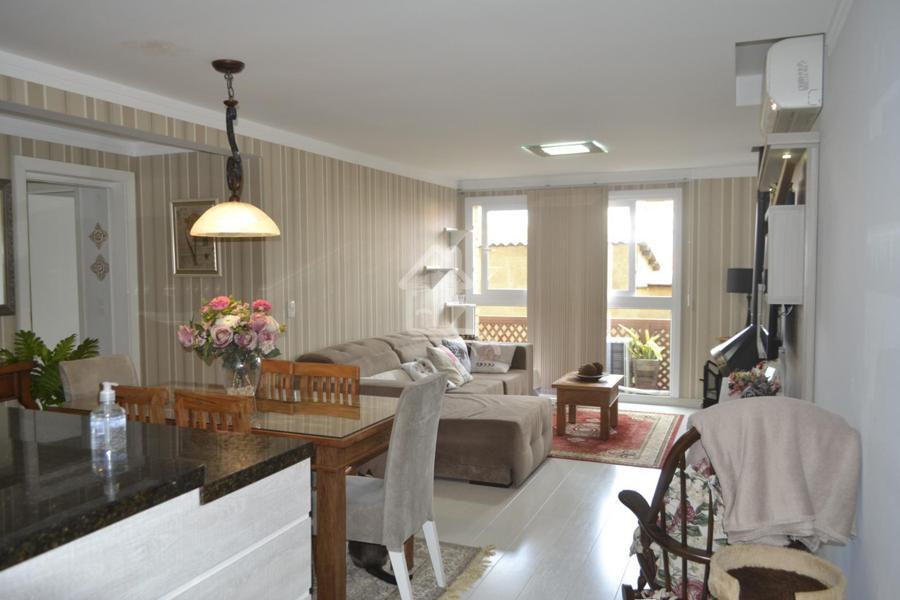 Apartamento à venda em Canela, no Centro, semimobiliado com dois dormitórios sendo uma suíte, em residencial nobre. Armários embutidos, cozinha integrada, suíte, banho social, living com dois ambientes, área de serviço, uma vaga de garagem, espera para calefação, água quente instalada, lareira instalada, churrasqueira e excelente posição solar.