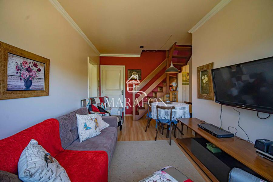 Apartamento na cobertura, mobiliado e equipado, com dois dormitórios sendo uma suíte, living com dois ambientes, banho social, cozinha, área de serviço integrada e 1 vaga de garagem. Apartamento com uma excelente posição solar (sol da tarde), aberturas em madeira, piso laminado, piso cerâmico, churrasqueira, calefação instalada e água quente.