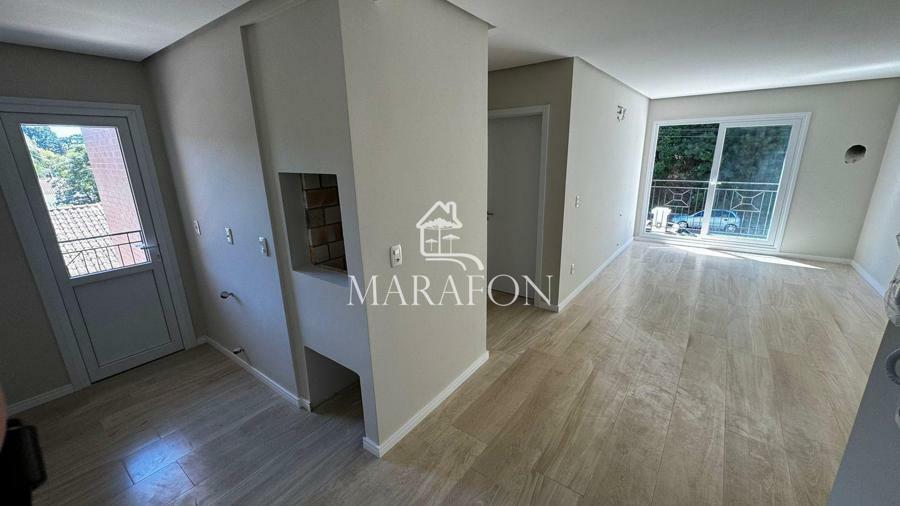 Excelente apartamento à venda em Canela, no centro da cidade, de dois dormitórios sendo uma suíte, banho social, sala (com espera para lareira), cozinha com churrasqueira, sala de jantar, área de serviço, uma vaga de garagem coberta, espera para calefação e splits, piso aquecido nos banheiros e água quente.