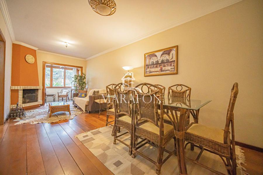 O imóvel oferece dois dormitórios sendo uma suíte, além de banho social, cozinha fechada, churrasqueira, sala de estar com lareira, sala de jantar, sacada integrada, área de serviço e uma vaga de garagem coberta.