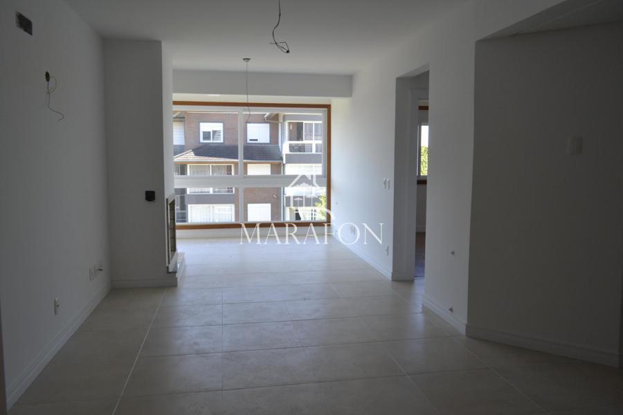 Apartamento com dois dormitórios sendo uma suíte suíte, living dois ambientes com lareira, cozinha com churrasqueira e área de serviço integrada, esperas para splits, calefação e água quente e uma vaga de garagem coberta.