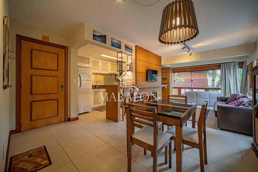 O imóvel mobiliado, conta com dois dormitórios sendo uma suíte, banheiro social, sala com dois ambientes com lareira, cozinha, espaço gourmet com churrasqueira, sacada fechada, área de serviço e duas vagas de garagem sendo uma coberta e uma descoberta.