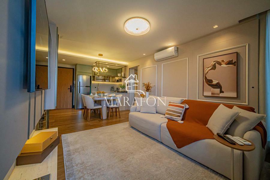 Totalmente mobiliado e decorado, o imóvel conta com duas suítes sendo uma suíte americana, banho social, sala com dois ambientes, terraço, cozinha americana, splits instalados e uma vaga de garagem.