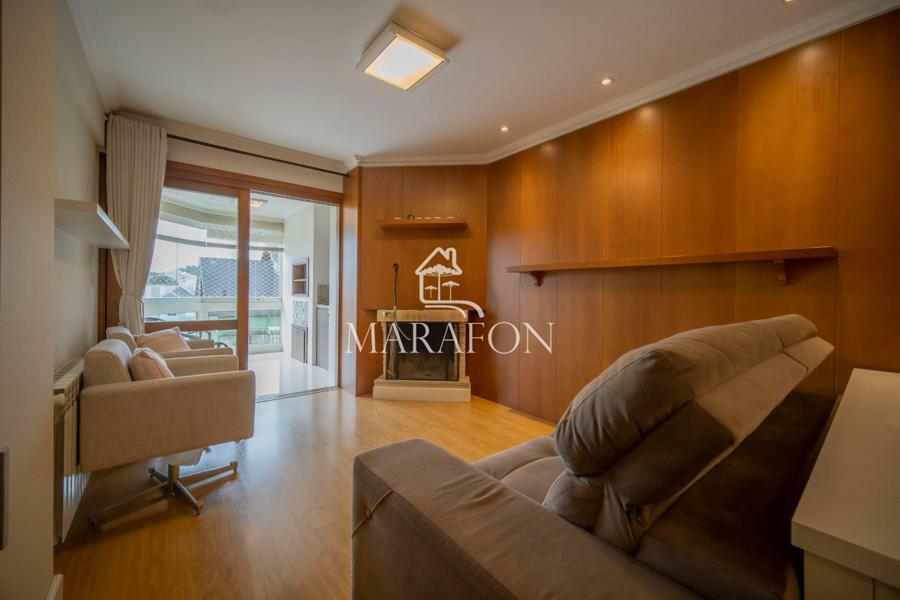 Lindo apartamento à venda em Canela, no centro da cidade! Apartamento mobiliado, conta com dois dormitórios sendo uma suíte, sala de estar e jantar integradas com lareira, cozinha americana, varanda gourmet com churrasqueira, calefação e split instalados, piso laminado e porcelanato e duas vagas de garagem. Imóvel com sol da tarde e com localização privilegiado no centro de Canela, próximo a farmácias, lojas, mercados, restaurantes e a poucos metros da Catedral de Pedra!