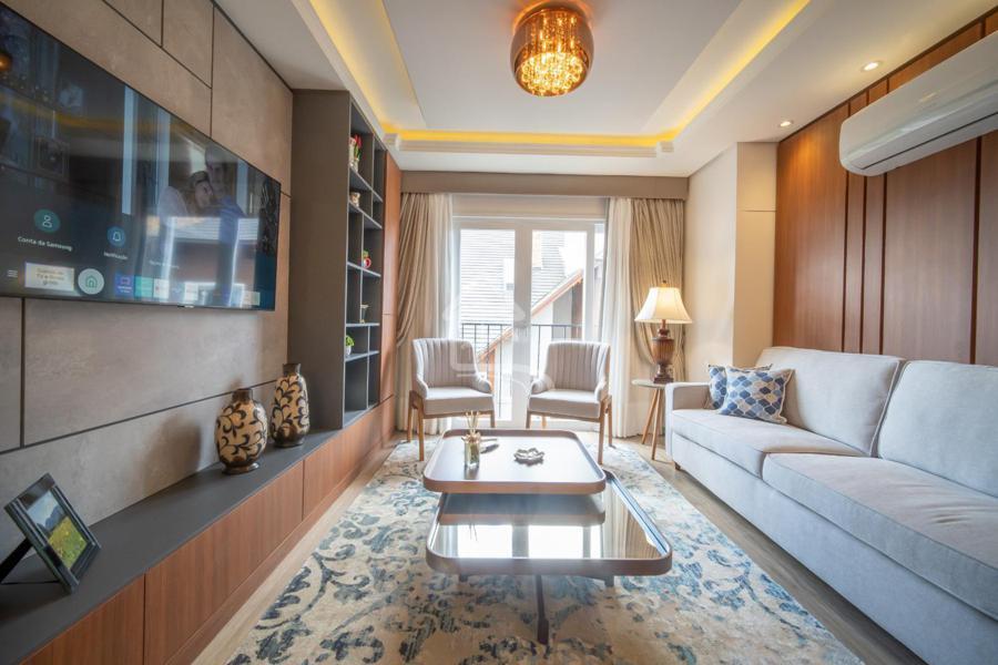 Marafon Imóveis vende lindo apartamento mobiliado e decorado com duas suítes, lavabo, living dois ambientes, cozinha americana com churrasqueira, splits instalados em todos os cômodos, vaga de garagem, piso laminado, piso porcelanato, rebaixamento em gesso e esquadrias em PVC, Localizado próximo ao Centro, em bairro tranquilo de Gramado, o condomínio conta com completa infraestruta de lazer com piscina aquecida, sauna, academia, sala de jogos, playground, salão de festas e espaço gourmet.