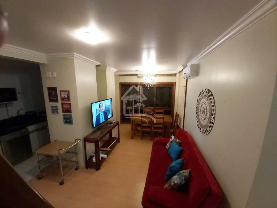 Lindo apartamento à venda em Gramado, no centro da cidade! Com três dormitórios sendo uma suíte e uma demi-suíte, banho social, living dois ambientes, cozinha com churrasqueira, área de serviço integrada, ambiente de cobertura com sala de estar/suíte e duas vagas de garagem. Apartamento com espera para calefação, espera para lareira, splits instalados, água quente instalada, piso cerâmico, piso laminado e aberturas em madeira.