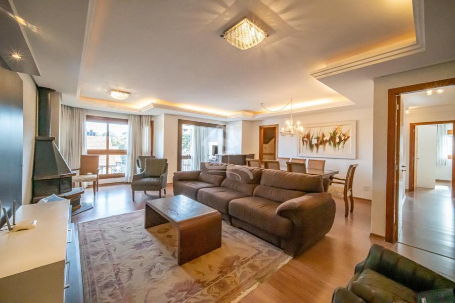 Apartamento na cobertura, todo mobiliado, conta com três dormitórios, sendo uma suíte, banho social, lavabo, living dois ambientes com lareira e sacada fechada com churrasqueira. Além disso tudo, conforto, segurança e localização, condomínio com a mais bonita Vista do Quilombo! Venha morar no Centro em um condomínio que conta com uma infraestrutura completa.