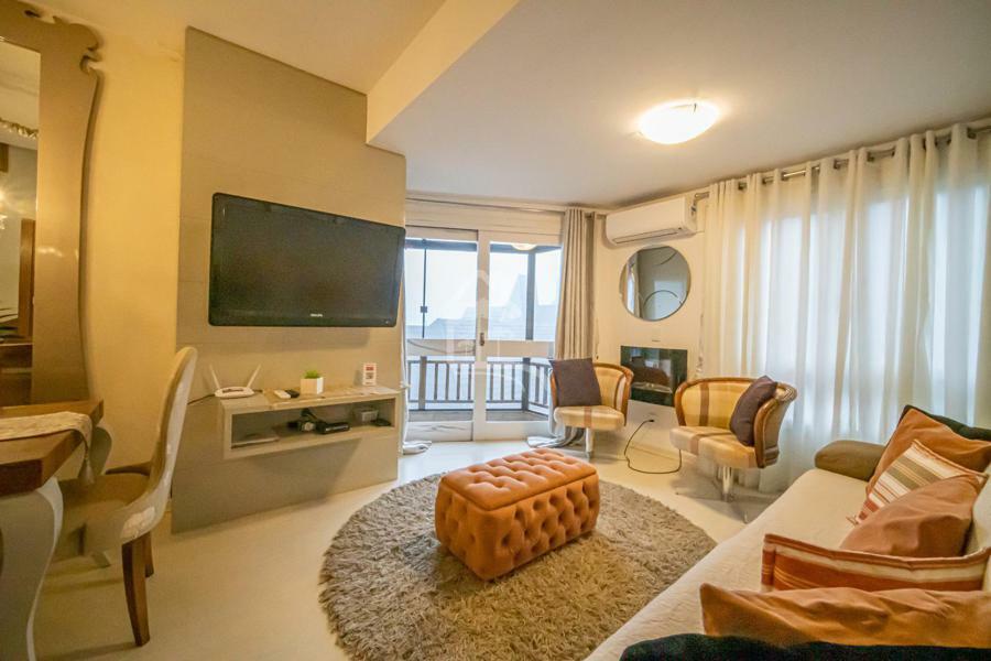 Apartamento na cobertura totalmente mobiliado e decorado, com três dormitórios, sendo uma suíte, living dois ambientes, com lareira elétrica, cozinha integrada, banho social, uma vaga de garagem, calefação, split e água quente instaladas, esquadrias em madeira, rebaixamento em gesso, piso porcelanato e piso laminado.