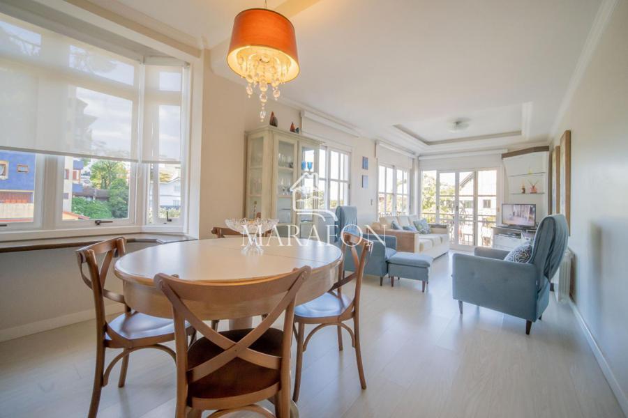 Ótimo apartamento à venda em Gramado, no centro, em uma das mais cobiçadas ruas da cidade a Avenida Borges de Medeiros. Mobiliado e decorado com três dormitórios (sendo uma suíte), banho social, living dois ambientes, sacada, sala de estar e jantar, cozinha com churrasqueira, área de serviço separada, calefação, uma vaga de garagem. Ótima orientação solar, prédio com elevador, interfone e portão eletrônico, há poucos metros da rua Coberta. Não perca a excelente oportunidade, marque uma visita e se imagine apreciando esta fantástica vista.