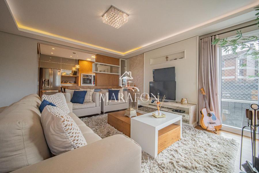 Lindo apartamento à venda em Gramado, finamente mobiliado e decorado, conta com três amplos dormitórios (sendo uma suíte), living dois ambientes composto por salas de estar e jantar com lareira, lindo piso em madeira, sacada, lavabo, cozinha americana com espera para churrasqueira, área de serviço, banheiro social, acabamento em gesso, esquadrilhas em madeira e PVC e duas vagas de garagem. Próximo a mercados, farmácias e restaurantes.