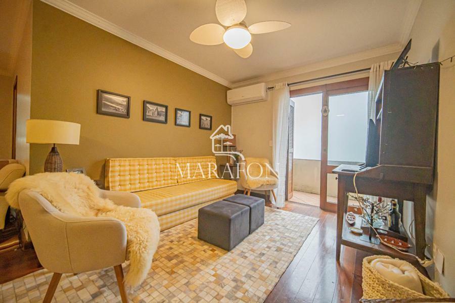 Apartamento mobiliado, conta com sala de estar, sacada, sala de jantar, cozinha fechada, churrasqueira, banho social, área de serviço, três dormitórios sendo uma suíte, armários embutidos, ventilador de teto, espera para calefação, splits, interfone e uma vaga de garagem.