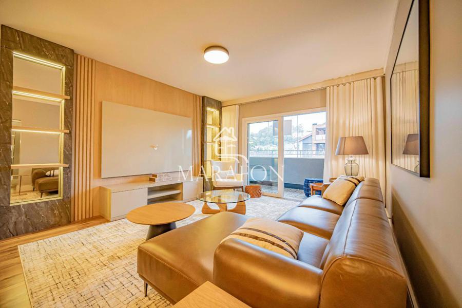 Ótimo apartamento à venda em Gramado, Todo mobiliado e decorado com três suítes, living dois ambientes com sacada, lavabo, escritório, cozinha americana com churrasqueira, duas vagas de garagem, esperas para calefação e splits, piso laminado nos dormitórios, piso porcelanato, esquadrias em PVC com vidros duplos, acabamentos em gesso, edifício com elevador e zelador.