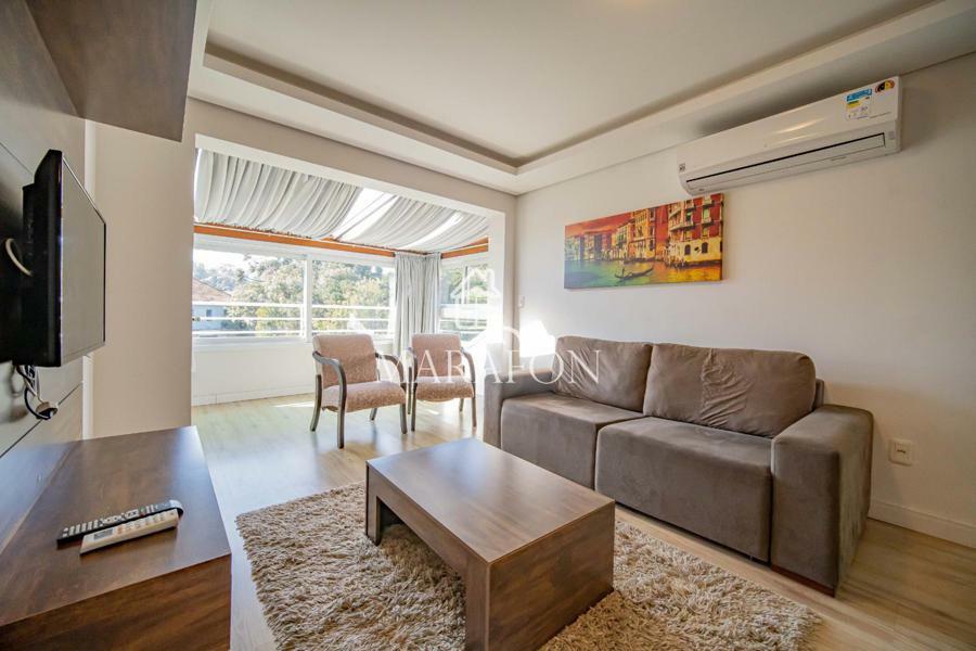 Apartamento mobiliado com três dormitórios sendo duas suítes, lavabo, banho social, living dois ambientes com sacada fechada, cozinha integrada com churrasqueira, área de serviço, água quente, espera para lareira, calefação e splits, duas vagas de garagem.