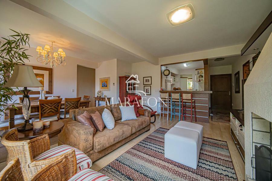 Conta com quatro dormitórios sendo uma suíte, banheiro social, sala de estar com lareira, lavabo, sacada fechada, sala de jantar, cozinha com churrasqueira, área de serviço e duas vagas de garagem cobertas.