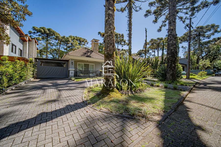 Casa térrea à venda em Canela, com cinco suítes, sendo três com closets, ampla área social, com uma sala de estar acolhedora, completa com lareira e uma varanda convidativa, cozinha integrada e equipada com churrasqueira, área de serviço, lavabo, deck externo, espaço gourmet, hidromassagem e quatro vagas de garagem. Com esquadrias em PVC e vidros duplos, além de calefação e split instalados em todas as áreas.