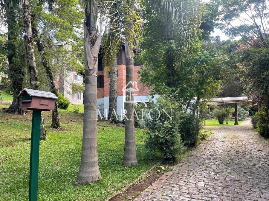 Casa à venda em Canela, com três dormitórios sendo uma suíte, sala de estar com lareira, cozinha americana com churrasqueira, sala de jantar integrada, banho social, lavanderia, água quente instalada, sacada, mezanino, varanda e uma vaga de garagem.