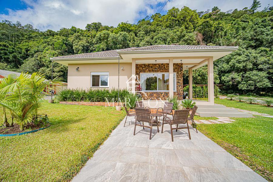 Marafon Imóveis vende linda casa toda térrea em alvenaria, semimobiliada com 177,00m² de obra construída em um terreno de 900m². A casa conta com três dormitórios sendo duas suítes, um banho social, sala de estar com lareira, sala de jantar, cozinha americana, um lindo espaço gourmet, pergolado para dois carros, piso laminado nos dormitórios e piso porcelanato nas áreas frias.
