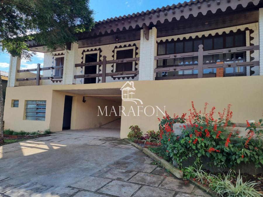 A casa conta com três dormitórios sendo uma suíte, dois banhos sociais, sala de estar com lareira, sala de jantar, cozinha, espaço gourmet, varanda, depósito, garagem, jardim e pátio nos fundos.