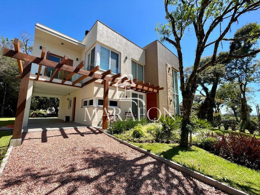 Casa mobiliada, com três suítes, sendo uma suíte master com hidro, closet e sacada, sala de estar com lareira, sala de jantar, cozinha americana com churrasqueira, lavabo, varanda com espera para ofurô, jardim, pergolado, salar de estar íntima, home office, calefação e splits instalados, área de serviço e garagem para dois carros.
