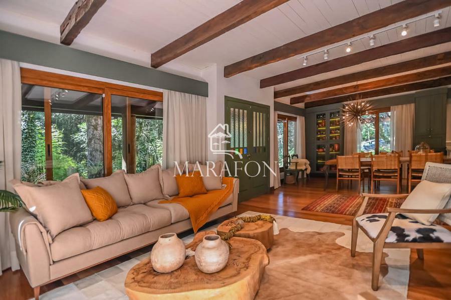 Linda casa em condomínio à venda em Gramado, toda mobiliada e decorada com três dormitórios sendo duas suítes uma delas é térrea, lavabo, sala de estar com dois ambientes, lareira, solarium, cozinha americana com churrasqueira, despensa, área de serviço, calefação instalada, garagem para dois carros e lindo jardim arborizado.