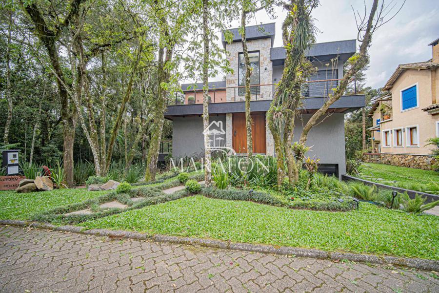 Casa à venda em condomínio de Canela, residência deslumbrante, situada no condomínio Reserva da Serra em Canela, é um verdadeiro paraíso integrado à natureza. Com um elegante hall de entrada de pé direito duplo, esta casa exala sofisticação em cada detalhe, muitas peças assinadas por designers renomados. Sua sala de estar com lareira e bar convida ao aconchego, enquanto a sala de jantar integrada à cozinha equipada e com churrasqueira oferece o cenário perfeito para momentos memoráveis junto da família e amigos. Espaço externo com lareira e móveis confortáveis. No primeiro andar, uma suíte térrea se destaca, enquanto o segundo pavimento abriga três suítes, incluindo uma master com closet e deliciosa banheira de imersão, todas com camas e cabeceiras estofadas, massageador e amplas sacadas que proporcionam vistas deslumbrantes da área de preservação. Terraço com firepit. No subsolo, uma adega ampla e convidativa, um cinema com isolamento acústico em suas paredes revestidas com mosaico de veludo, espuma de alta densidade e madeira grápia, equipado com telão Gaia, projetor Epson ambos líderes de mercado, e móveis Sierra oferecem entretenimento de alto nível. O espaço externo é um convite ao relaxamento, com cozinha extra e um bar integrado ao ofurô, com adega climatizada e cervejeira, o paisagismo é lindo a iluminação toda pensada cria um ambiente fabuloso, destacando a beleza deste refúgio nas noites da serra gaúcha. Esquadrias pretas com vidros duplos, cortinas e persianas automatizadas, calefação, piso aquecido, água quente, splits espelhados instalados, mobiliada de altíssima qualidade, marcenaria duplada, equipada com eletrônicos e eletrodomésticos de ponta e decorada com muito requinte. Cortinas de linho. Praticamente todas as paredes internas da casa são revestidas. Na parte externa foram utilizados materiais nobres como pedra e madeira para harmonizar o projeto arquitetônico. Porcelanatos portinari. Garagem para 4 carros, calçada toda em basalto.