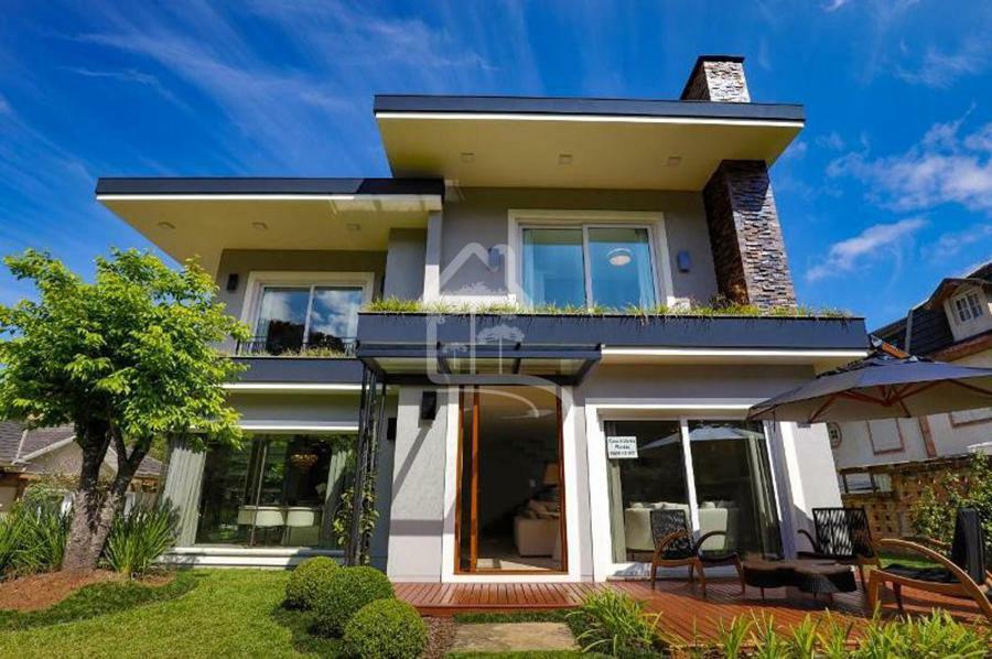 Casa com quatro amplas suítes (sendo uma térrea e uma máster com banheira), lavabo, sala de estar com lareira e acesso ao deck, sala de jantar, cozinha com churrasqueira, lavanderia, finamente mobiliada e decorada, piso aquecido, esperas para splits, pergolado para dois carros. Paredes externas duplas, esquadrias em PVC com vidros duplos.