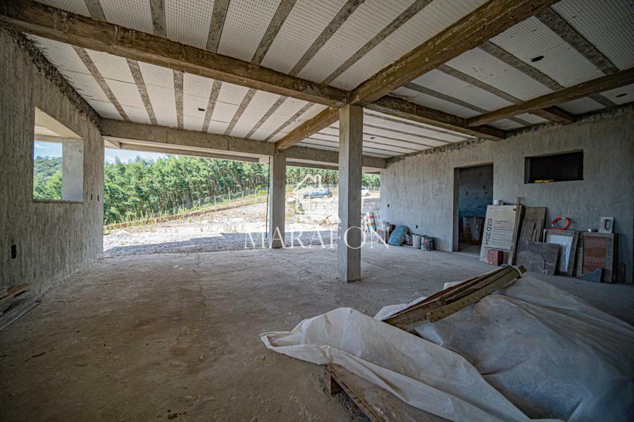 Casa em finalização de obra com 480m² privativos em uma área de terreno 10 mil m², casa conta com quatro suítes todas com closet, sala de tv, sala de estar, sala de jantar com lareira, cozinha com ilha, churrasqueira e forno de pizza, sala de jogos, área de serviço e garagem coberta, uma Iluminação natural incrível, com vista direto para o nascer do sol, sauna a lenha, espera para calefação e splits, pisos em porcelanato nas áreas frias e vinílico nas salas e dormitórios, aberturas em PVC com vidros duplos e tela de mosquiteiro.